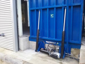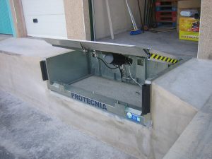 El manejo de las plataformas Protecnia 150 y 100 es muy fácil y sencillo con una palanca de mando. Las dos plataformas niveladoras se montan en una rampa